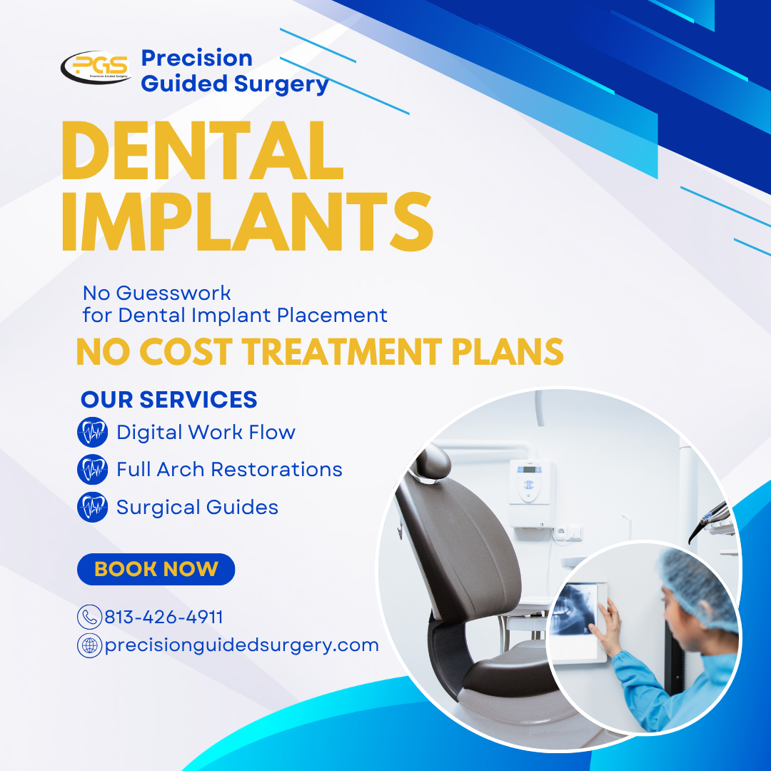 Call Precision Guided Surgery (PGS) today and let us provide you with the opportunity to embrace these cutting-edge practices, and provide better care, improved aesthetics, and greater comfort to your patients opting for full arch restorative solutions. The future of full arch restorations looks brighter — and more precise — than ever! (813) 426-4911